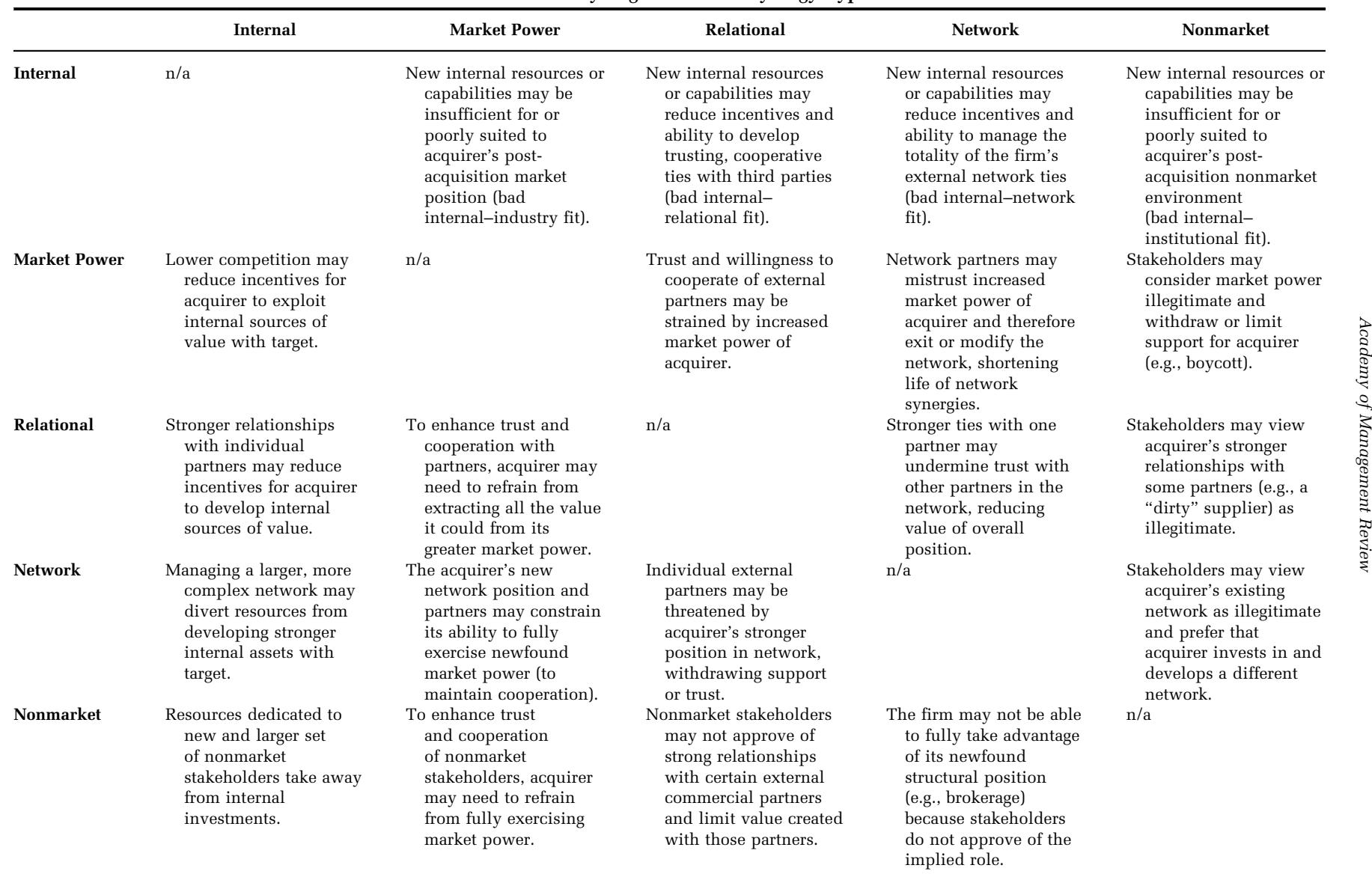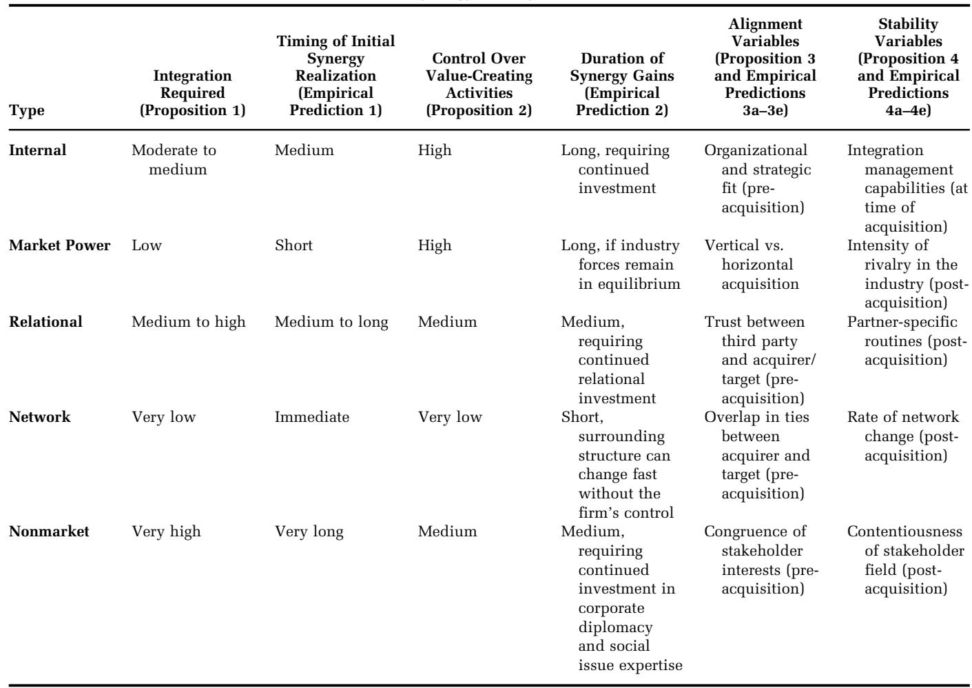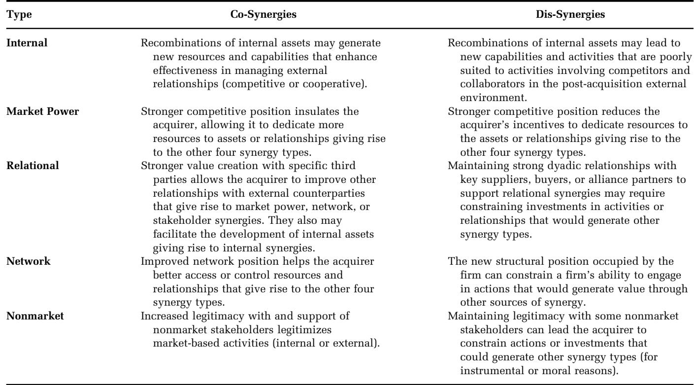 TABLE 1 Typology of Acquisition Synergies