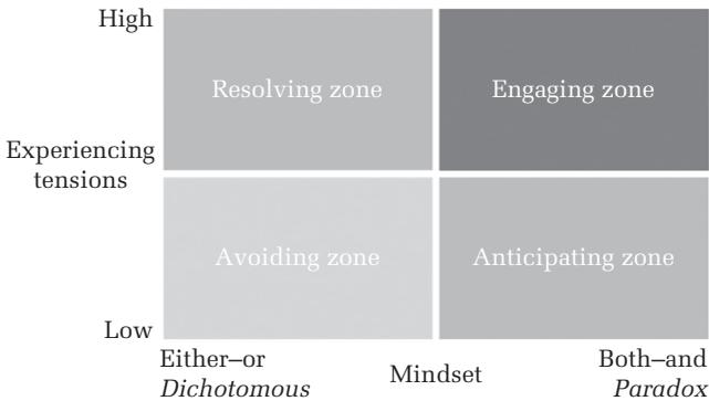 FIGURE 2 Paradox Mindset Inventory: Zones of Navigating Paradoxes 图2 悖论思维量表:悖论驾驭领域